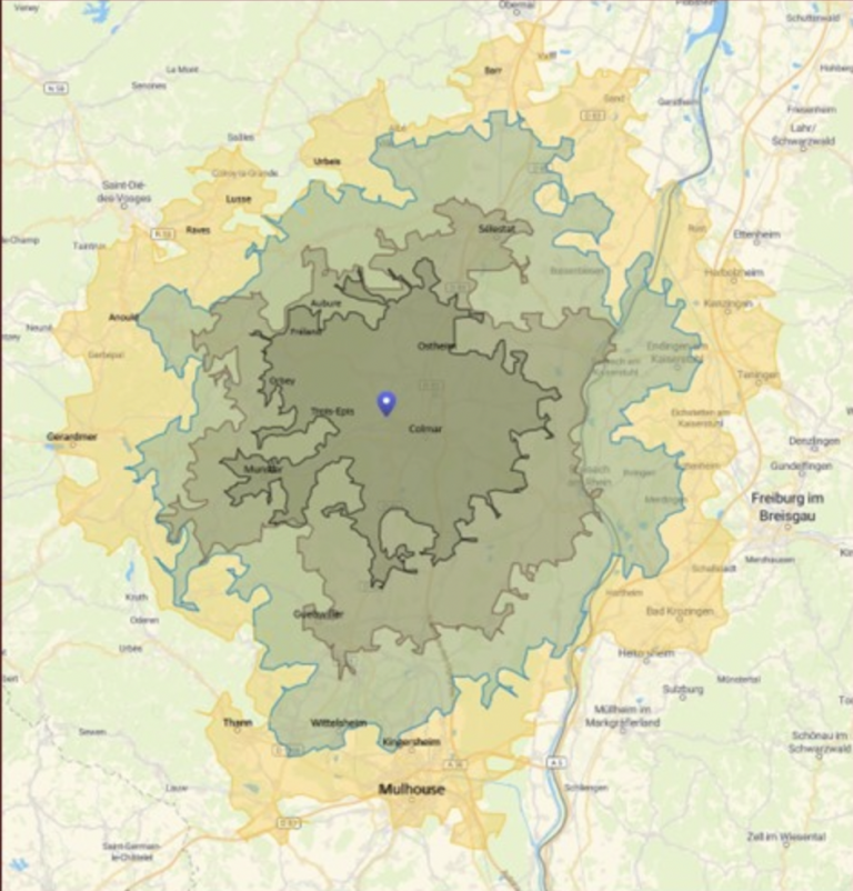 - 30 Km ( Zone marron ) : Frais de déplacement à 5€